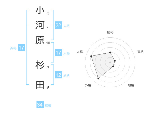 小河原 杉田さんの総格は34画の2点!
