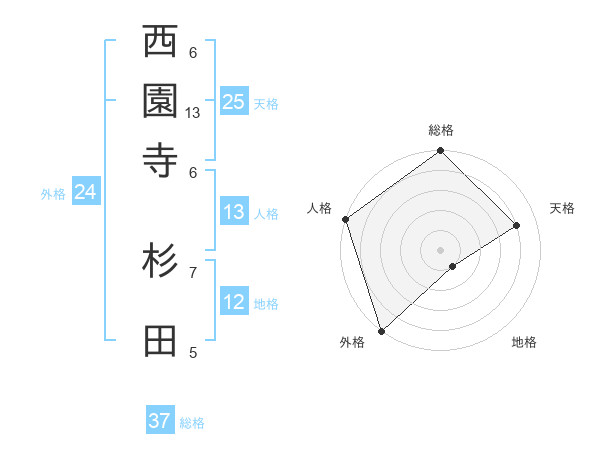 西園寺 杉田さんを姓名の画数から五運を鑑定
