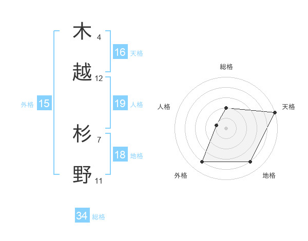 木越 杉野さんの総格は34画の2点!