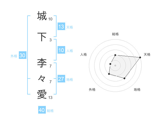 城下 李々愛さんを姓名の画数から五運を鑑定