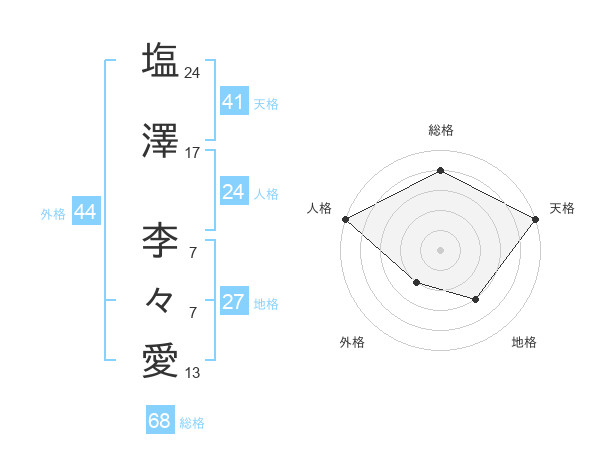 塩澤 李々愛さんを姓名の画数から五運を鑑定