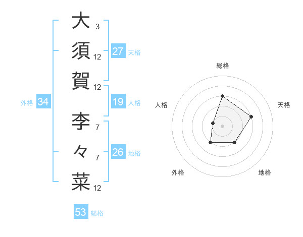 大須賀 李々菜さんの総格は53画の3点!