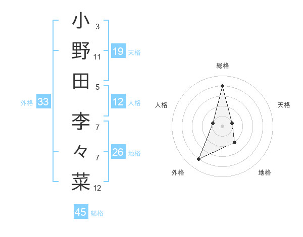 小野田 李々菜さんの総格は45画の4点!