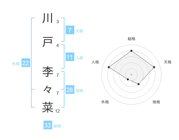 川戸 李々菜さんを姓名の画数から五運を鑑定