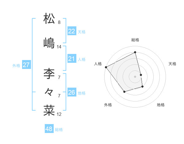 松嶋 李々菜さんの総格は48画の4点!
