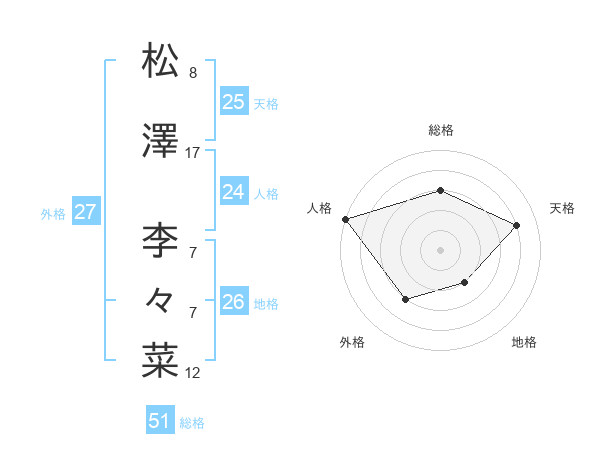 松澤 李々菜さんを姓名の画数から五運を鑑定