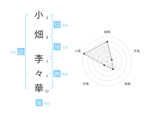 小畑 李々華さんを姓名の画数から五運を鑑定