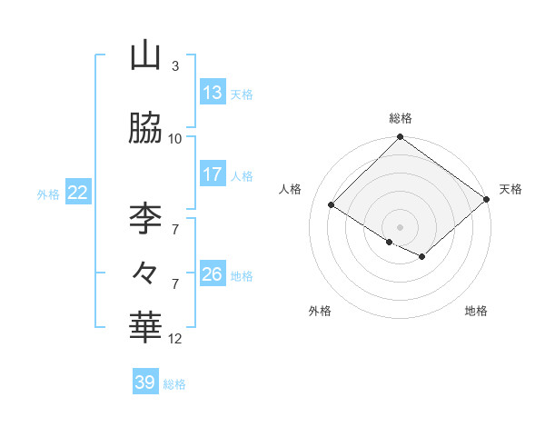 山脇 李々華さんを姓名の画数から五運を鑑定