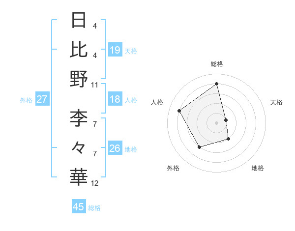日比野 李々華さんの総格は45画の4点!