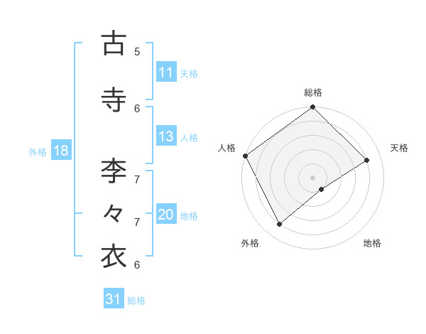 古寺 李々衣さんを姓名の画数から五運を鑑定