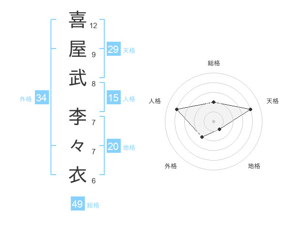 喜屋武 李々衣さんを姓名の画数から五運を鑑定