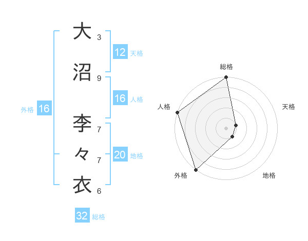大沼 李々衣さんの総格は32画の5点!