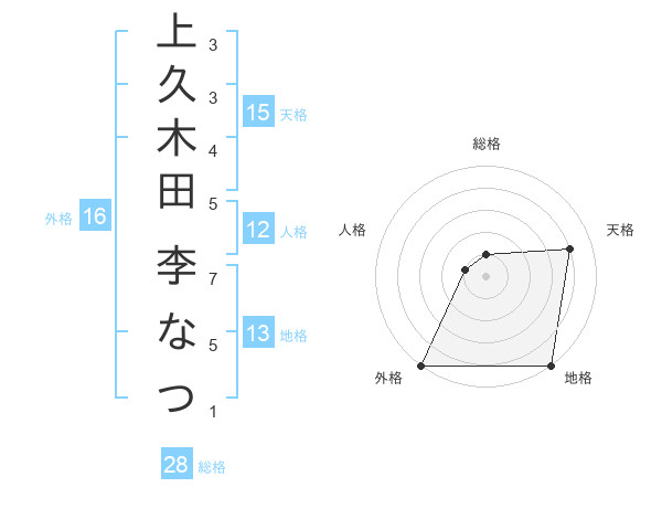 上久木田 李なつさんの外格は16画の5点!