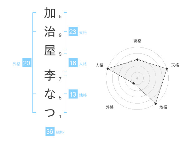 加治屋 李なつさんを姓名の画数から五運を鑑定
