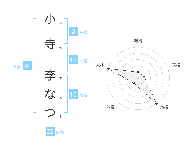 小寺 李なつさんを姓名の画数から五運を鑑定