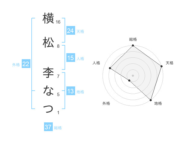 横松 李なつさんの総格は37画の5点!