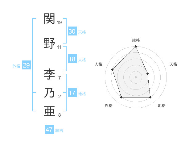 関野 李乃亜さんを姓名の画数から五運を鑑定