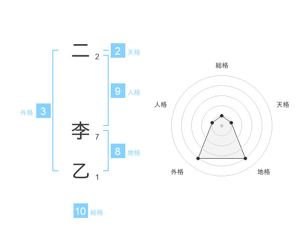 二 李乙さんの総格は10画の1点!