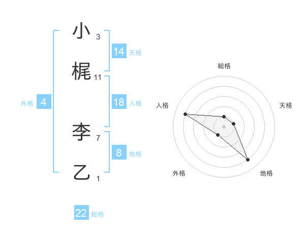 小梶 李乙さんの天格は14画の1点!