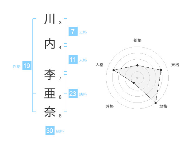 川内 李亜奈さんの総格は30画の2点!
