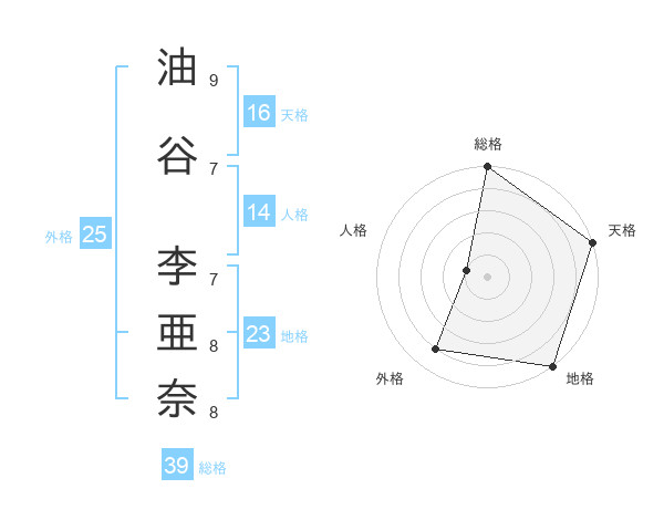 油谷 李亜奈さんを姓名の画数から五運を鑑定