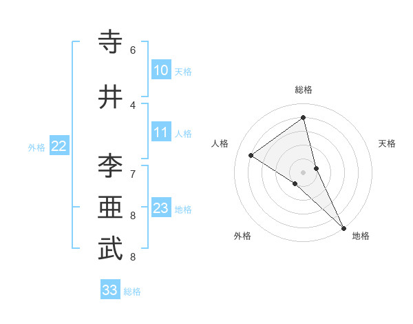寺井 李亜武さんの総格は33画の4点!
