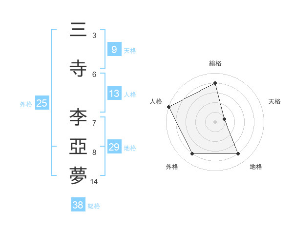 三寺 李亞夢さんを姓名の画数から五運を鑑定
