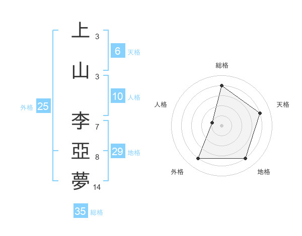 上山 李亞夢さんを姓名の画数から五運を鑑定