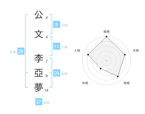 公文 李亞夢さんを姓名の画数から五運を鑑定