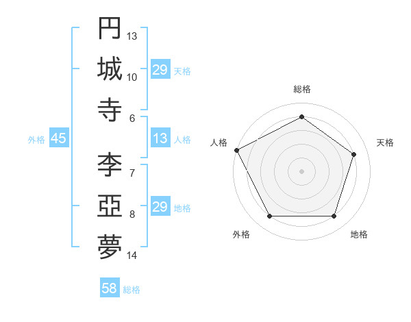 円城寺 李亞夢さんの天格は29画の4点!