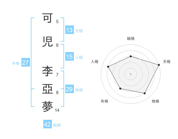 可児 李亞夢さんの総格は42画の3点!