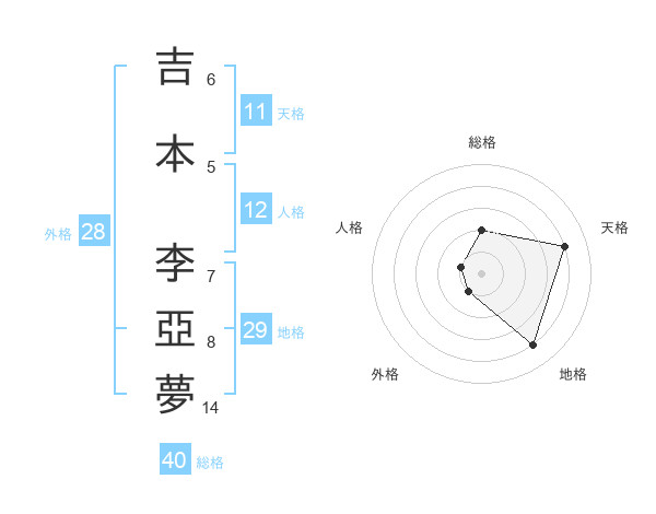 吉本 李亞夢さんの天格は11画の4点!