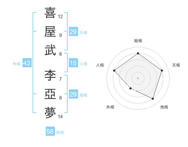 喜屋武 李亞夢さんを姓名の画数から五運を鑑定