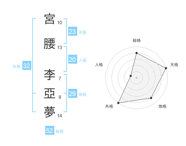 宮腰 李亞夢さんを姓名の画数から五運を鑑定