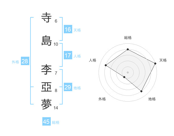 寺島 李亞夢さんを姓名の画数から五運を鑑定