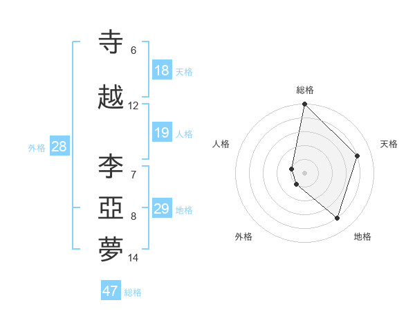 寺越 李亞夢さんの総格は47画の5点!