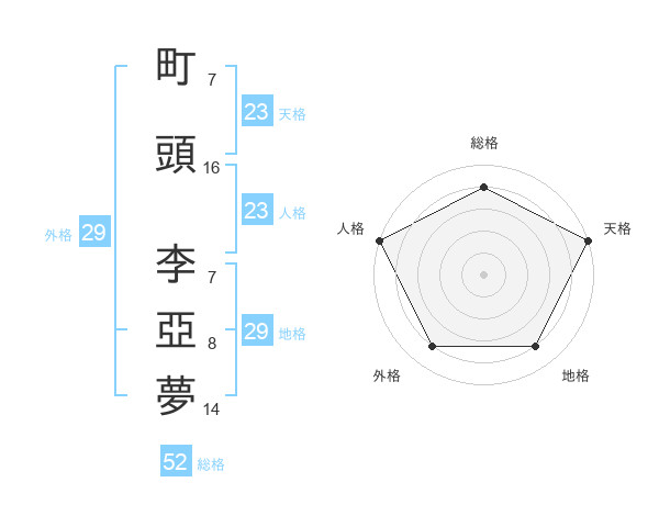 町頭 李亞夢さんの総格は52画の4点!