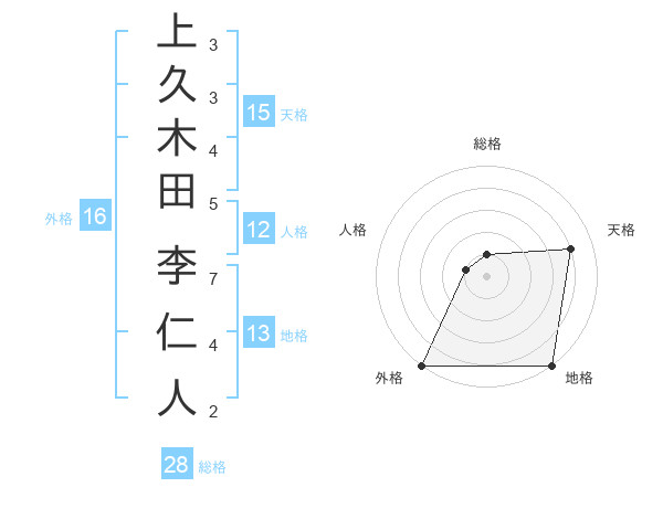 上久木田 李仁人さんを姓名の画数から五運を鑑定