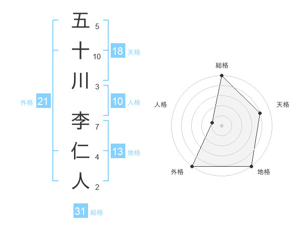 五十川 李仁人さんを姓名の画数から五運を鑑定