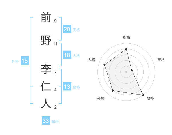 前野 李仁人さんを姓名の画数から五運を鑑定