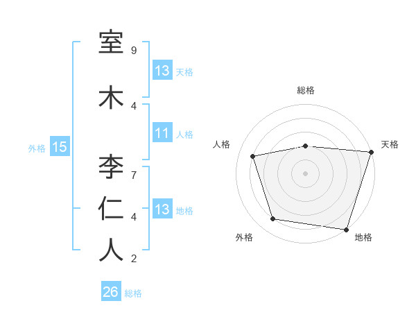 室木 李仁人さんを姓名の画数から五運を鑑定