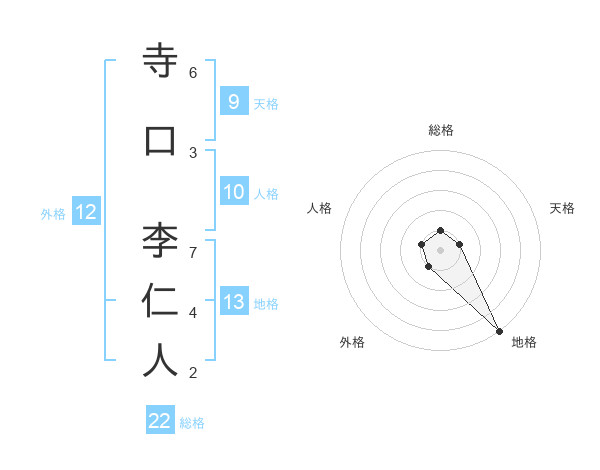 寺口 李仁人さんの総格は22画の1点!