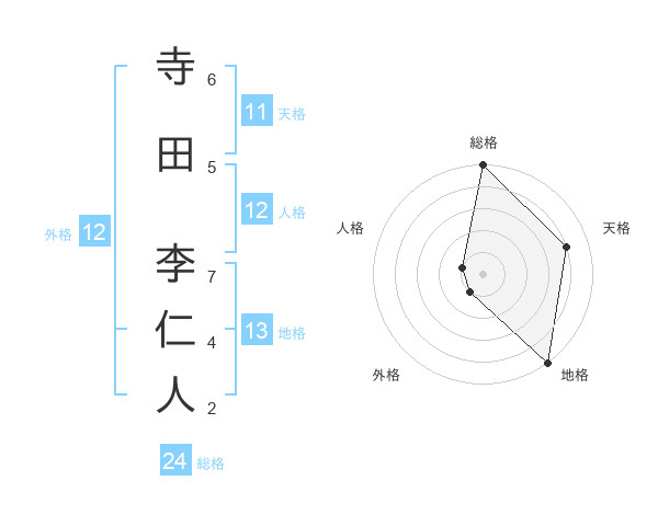 寺田 李仁人さんを姓名の画数から五運を鑑定