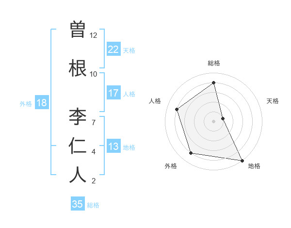 曽根 李仁人さんの総格は35画の4点!