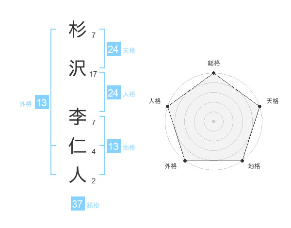 杉沢 李仁人さんを姓名の画数から五運を鑑定