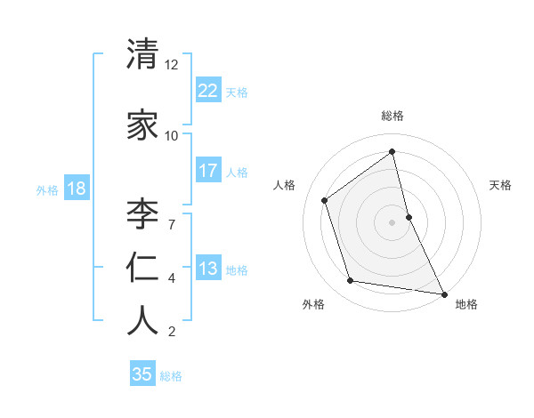 清家 李仁人さんを姓名の画数から五運を鑑定