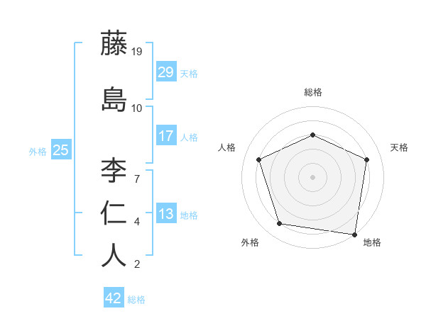 藤島 李仁人さんを姓名の画数から五運を鑑定