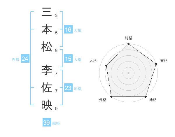 三本松 李佐映さんを姓名の画数から五運を鑑定