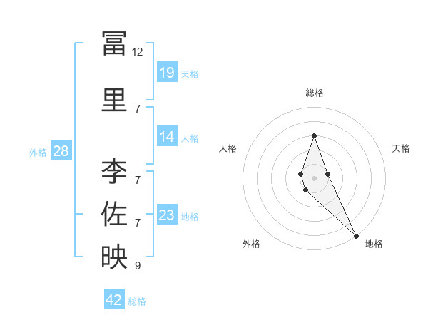 冨里 李佐映さんを姓名の画数から五運を鑑定