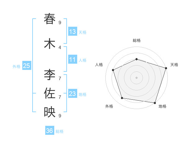 春木 李佐映さんを姓名の画数から五運を鑑定